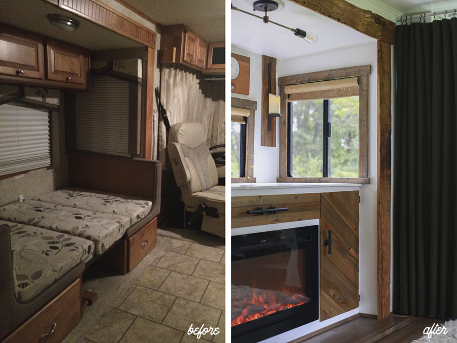 If you’re curious about the process we went through to prepare and install the hand-hewn barnwood inside our RV, you can watch the video below: