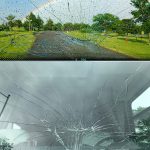 We were told the windshield has a sticky material in between the layers so it shouldn’t break, but that we could put clear packing tape over the worst part of the damage as an extra precaution (I remembered this tip from an old Gone with the Wynn’s video which made me ask about it).