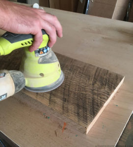 sanding-reclaimed-wood-for-rv-nightstand-mountainmodernlife.com